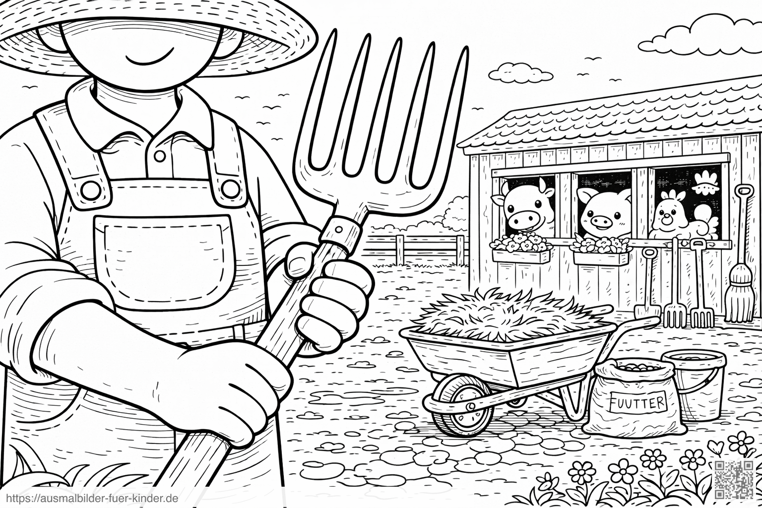 Hier rückt echte Arbeit auf dem Land in den Fokus: kräftige Hände, einfache Werkzeuge und eine stimmige Hofkulisse erzählen von Alltag und Tradition. Die Malvorlage bietet eine besondere Perspektive, die Kinder selten sehen, und regt dadurch zum Nachfragen und Entdecken an. Unterschiedliche Texturen sorgen für Abwechslung beim Kolorieren, von Stoff bis Holz. So entsteht ein ausdrucksstarkes Bild mit viel Charakter.