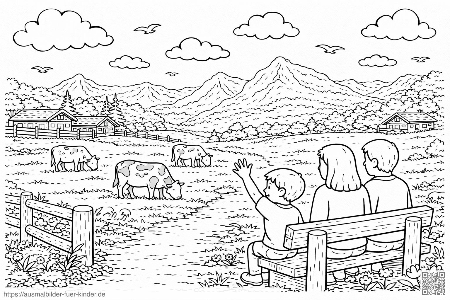 Deutschland: Alpine Wiese im Allgäu - Ausmalbild