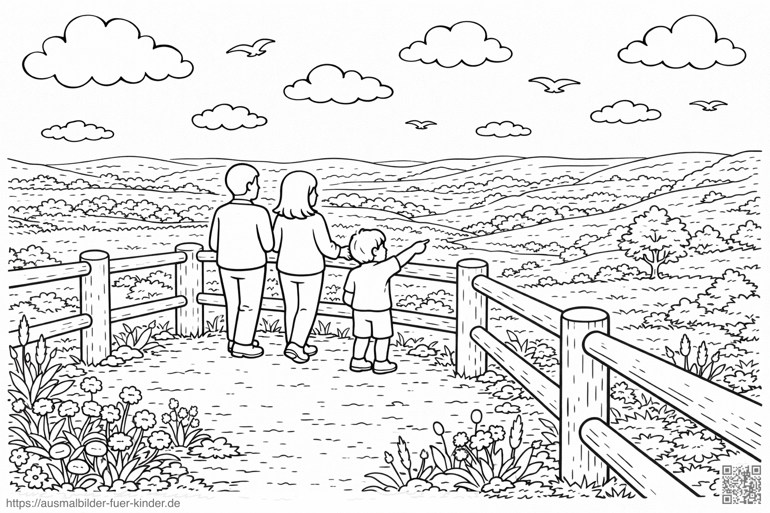 Deutschland: Familie im Blick auf die Rhön - Ausmalbild