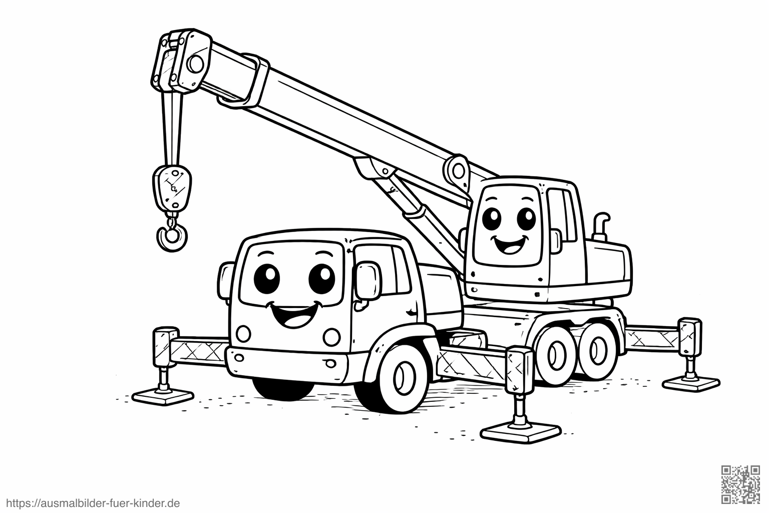 Freundlicher Kranwagen mit ausfahrbarem Arm - Ausmalbild
