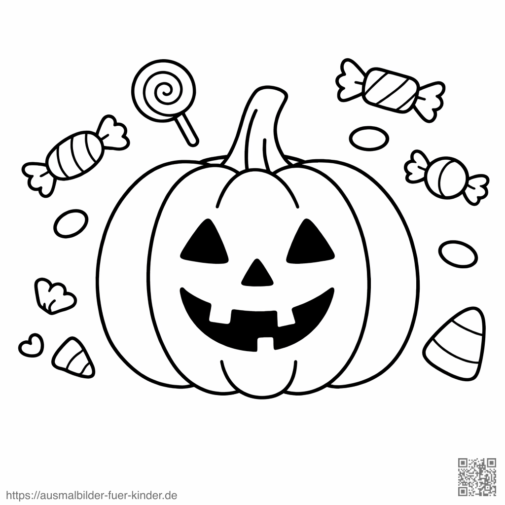 Fröhlicher Kürbis Mit Süßigkeiten - Ausmalbild