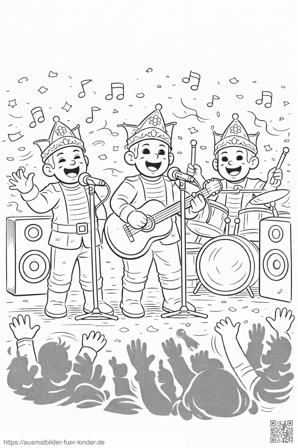 Ein schönes Ausmalbild: Kölsche Karnevalsbande auf der Bühne
