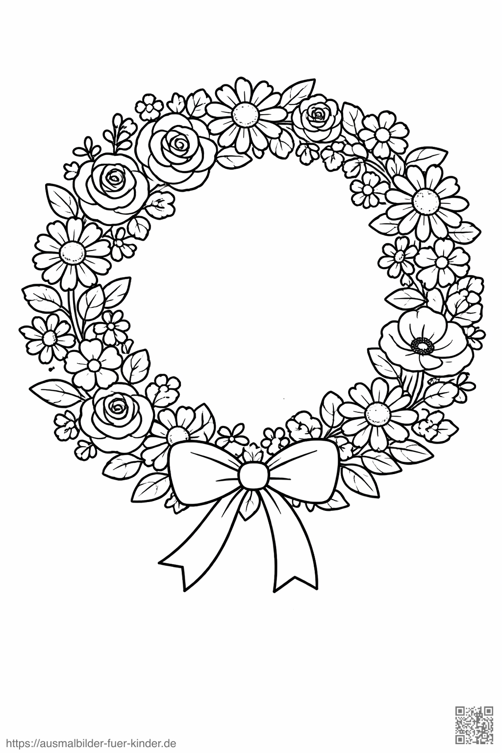 Blumenkreis mit Schleife - Ausmalbild