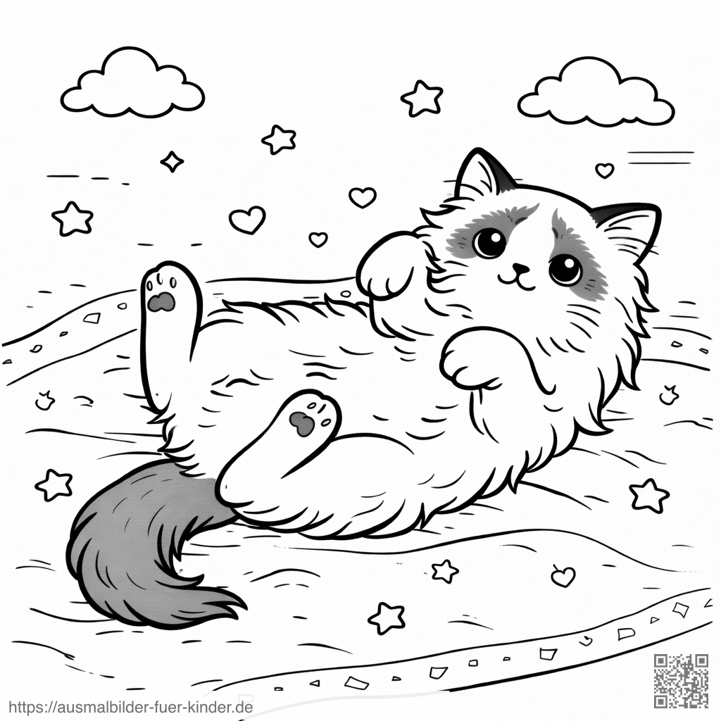 Ein schönes Ausmalbild: Katzen_Entspannende Ragdoll auf Decke