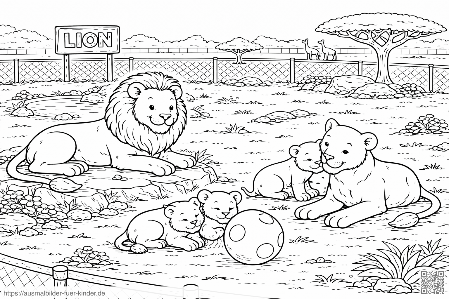 Löwenfamilie im Zoo Gehege - Ausmalbild
